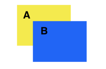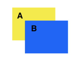 ex) A 와 B 의 z-index 모두 0 인데, html B 가 더 나중에 배치된 경우